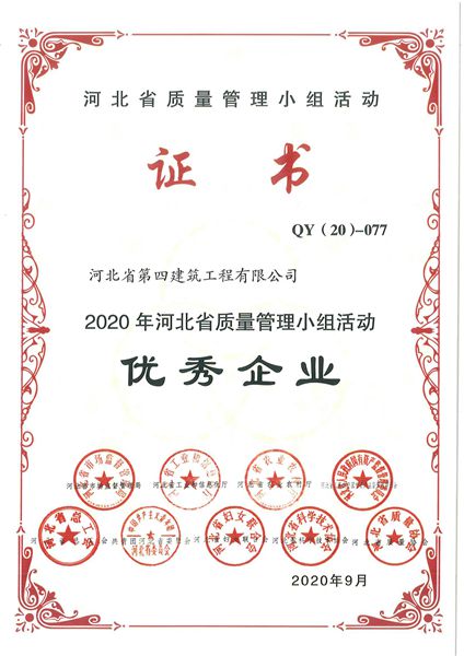 11月10日,公司收到中國建筑業(yè)協(xié)會《關(guān)于2020年工程建設(shè)質(zhì)量管理小組活動成果大賽的通知》和河北省質(zhì)量協(xié)會《關(guān)于印發(fā)2020年河北省質(zhì)量管理小組活動質(zhì)量科技成果及優(yōu)秀企業(yè)、卓越領(lǐng)導(dǎo)者、優(yōu)秀推進(jìn)者名單的通知》兩份文件。文件公布了各項(xiàng)榮譽(yù)的獲獎名單,公司獲得2020年河北省質(zhì)量管理小組活動優(yōu)秀企業(yè)。公司推薦的11個(gè)成果以及5個(gè)優(yōu)秀個(gè)人分別獲獎,3項(xiàng)成果獲得全國獎項(xiàng)。