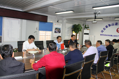 在會議室,董富強與項目部管理人員進行了工作交流,對各項工作給予肯定,強調(diào)項目部要提高站位,從嚴要求,以“四個樹”為工作著力點,在安全、質(zhì)量、進度、文明施工方面再發(fā)力,再提升,提高項目管理效果。一是安全樹紅線,要抓住公司第17次“百日安全生產(chǎn)無事故倒計時”活動契機,強化安全責(zé)任,樹牢“紅線意識”,從嚴落實安全制度,工作要做細,杜絕一切安全事故發(fā)生。高支模專項方案屬于超危大項目,一定要按照規(guī)范要求組織施工。二是質(zhì)量樹品牌。要弘揚“工匠精神”,做到標準化施工,確?;炷撩軐嵍龋Y(jié)構(gòu)幾何尺寸符合圖紙設(shè)計要求,切實做好質(zhì)量通病防范措施,做到精益求精,打造好四建品牌。三是進度樹形象,要增強履約意識,倒排工期,制定詳細的進度計劃。要發(fā)揮四建鐵軍精神,抓住目前黃金時間全力施工,打硬仗、打勝仗,確保“115”目標實現(xiàn),展現(xiàn)河北四建特級企業(yè)形象。四是文明施工樹標桿,現(xiàn)場各項文明施工要落實到位,做好揚塵防治工作,達到觀摩工地標準。