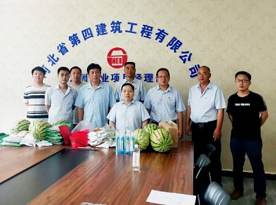 8月11日上午,公司黨委副書記、工會(huì)主席李懷生到二分公司九洲項(xiàng)目部,對炎炎夏日奮戰(zhàn)在一線的全體職工進(jìn)行慰問,二分公司黨總支部書記、工會(huì)主席孫立鋒一同參加。